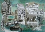 2014nieuwe compositie gemaakt van vroegere inkttekeningen van gebouwen zwart / wit